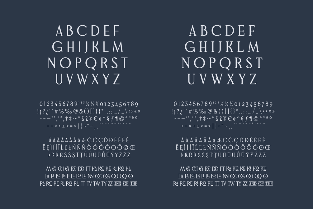 Both of them can also be bought separately. Gyroscope has elegant and well balanced curves of letters perfect for logos, headlines, magazines, or even longer texts. There are selected ligatures you can use for a better look.