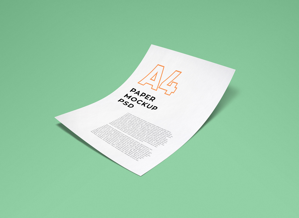 Photorealistic A4 paper mockup. Put your own graphics into smart layer and save it.