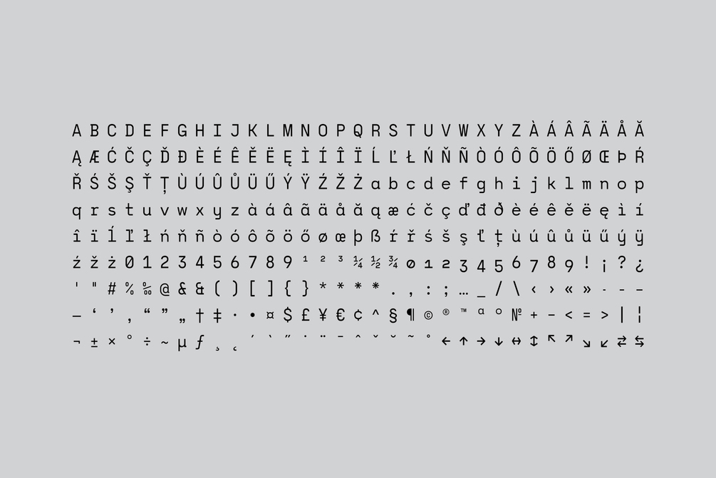 This versatile font with clean geometry and slightly rounded corner elements works great in digital space, as well in print. It also retains its legibility at smaller sizes. Typographic features include old-style figures, directional arrows and four types of asterisks. The entire font is suitable for purposes such as tabular layout, coding, website, but also for magazines, logos, signs, products, and others.